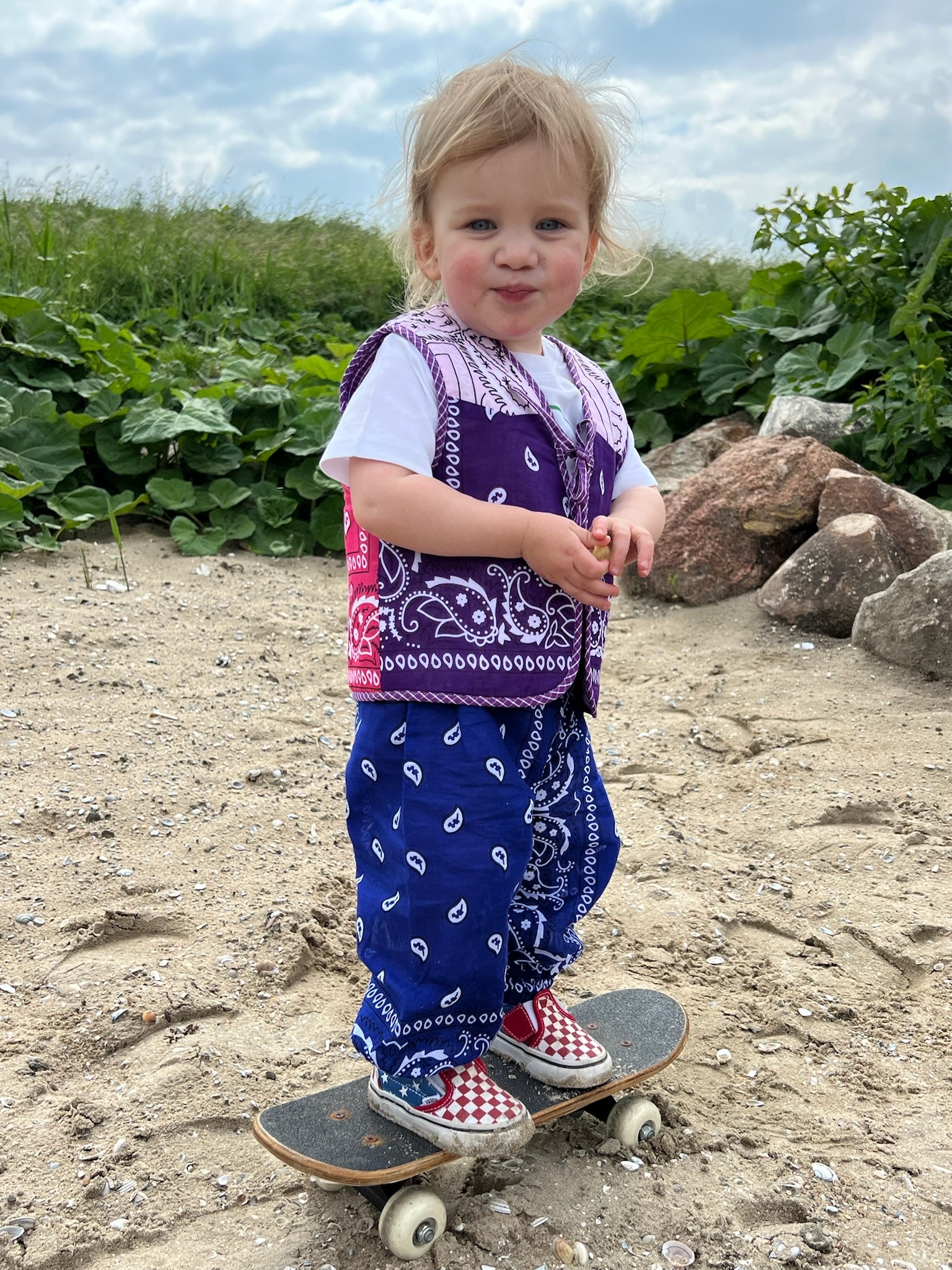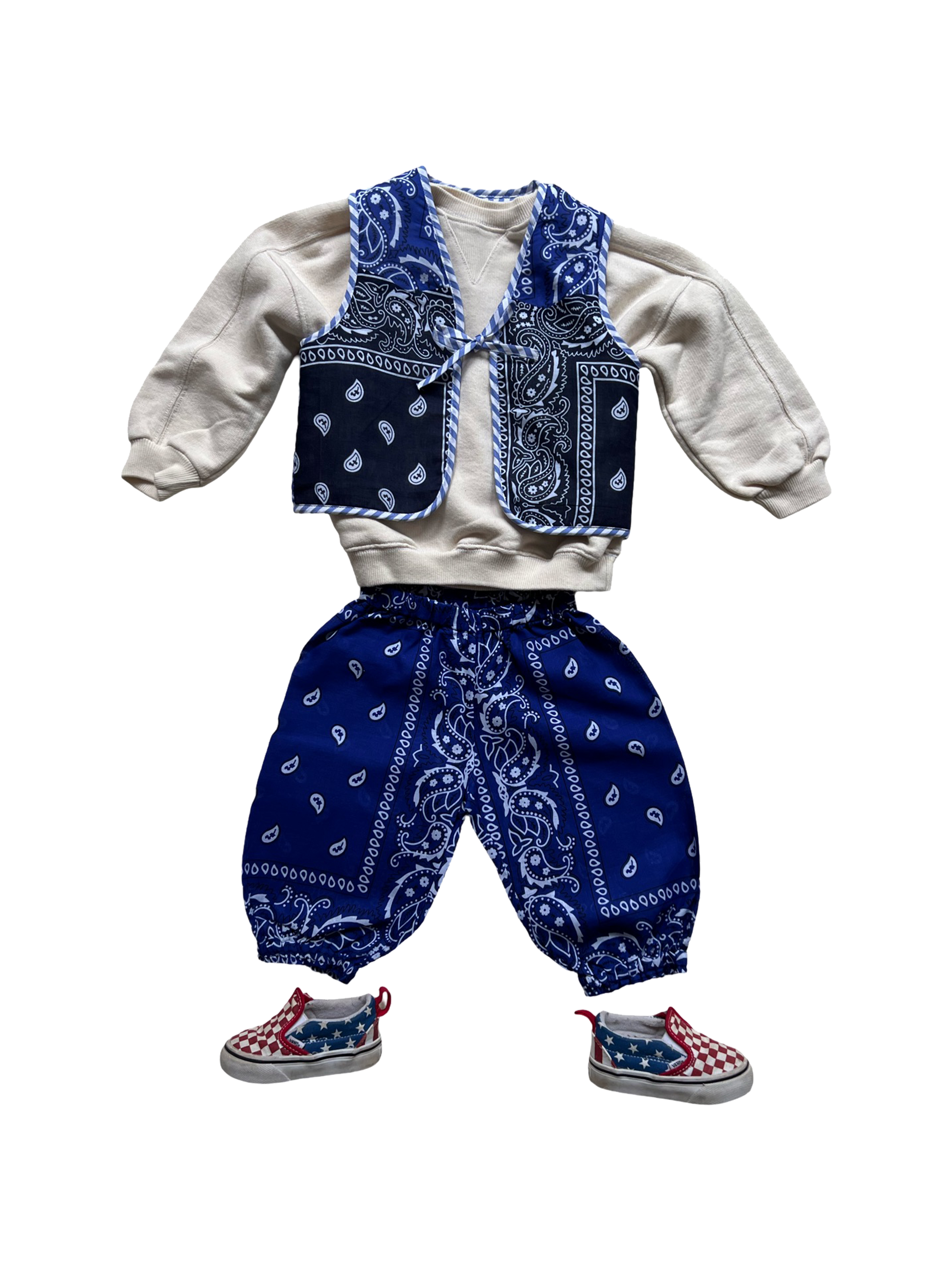 Introducing our Kids' Cotton Bandana Pants. Crafted from 100% cotton bandanas. Featuring an elastic waistband and a relaxed fit, they're perfect for your little ones on sunny days.