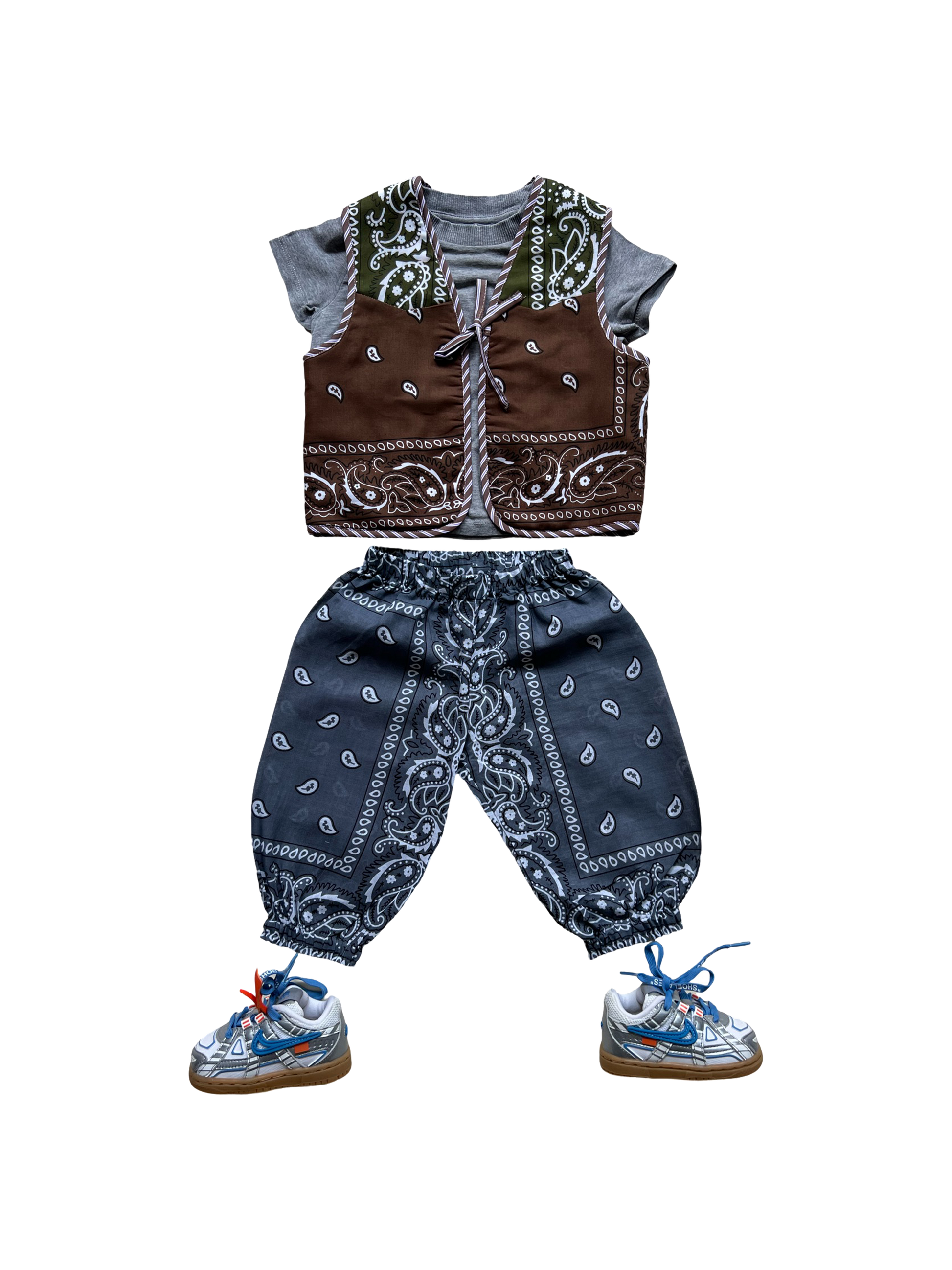 Introducing our Kids' Cotton Bandana Pants. Crafted from 100% cotton bandanas. Featuring an elastic waistband and a relaxed fit, they're perfect for your little ones on sunny days.