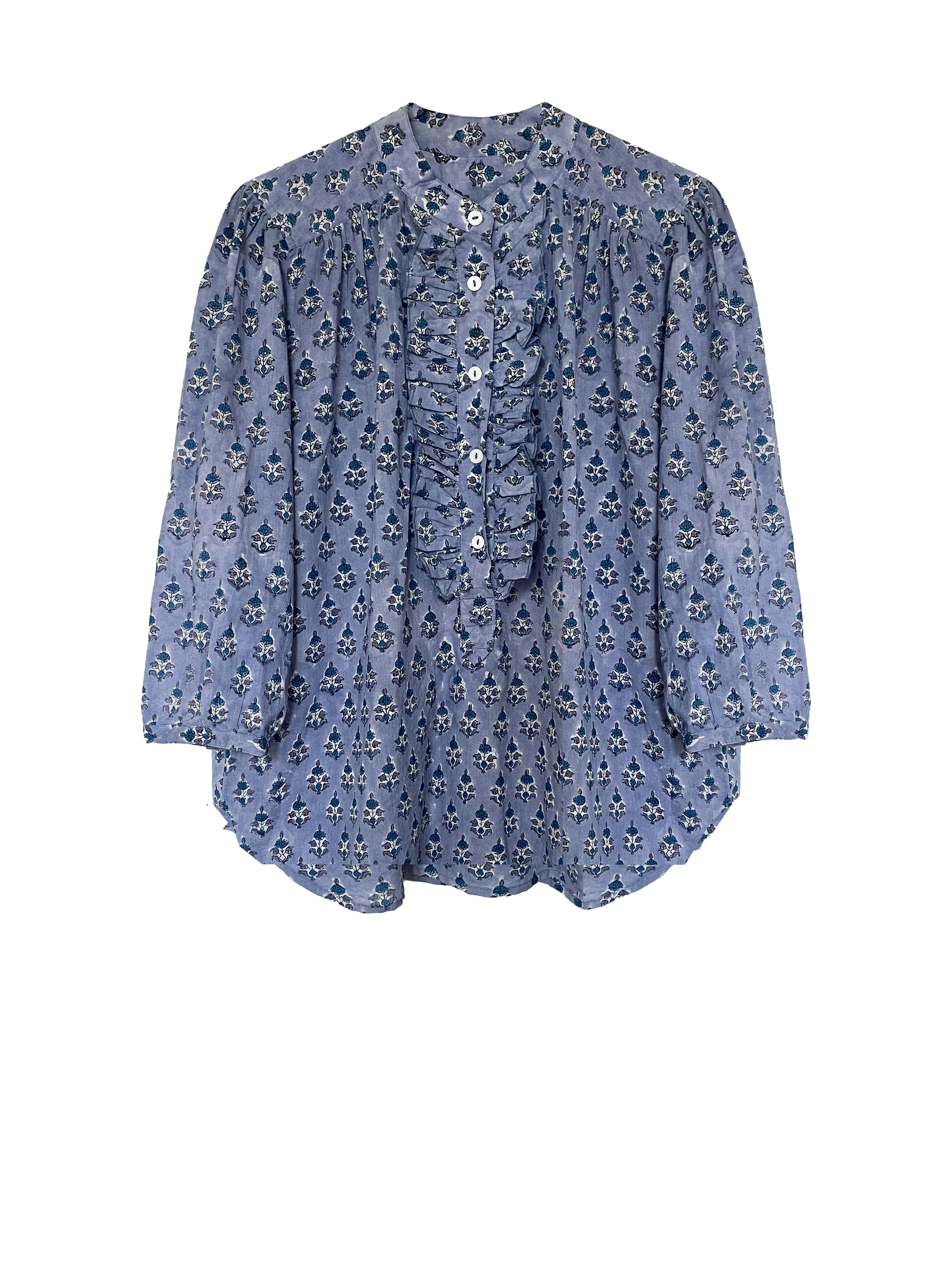 Add a touch of effortless elegance to your wardrobe with our Philou shirt. Made from soft cotton and tailored for a relaxed fit, this shirt features delicate ruffle details, a button-down front, three-quarter sleeves and a curved hemline. Ideal for sunny days, relaxed evenings, and everything in between.